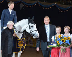 Carsten-Otto Nagel mit Corradina. Es gratulieren Paul Schockemöhle und Georg Stiens. Foto: Frieler