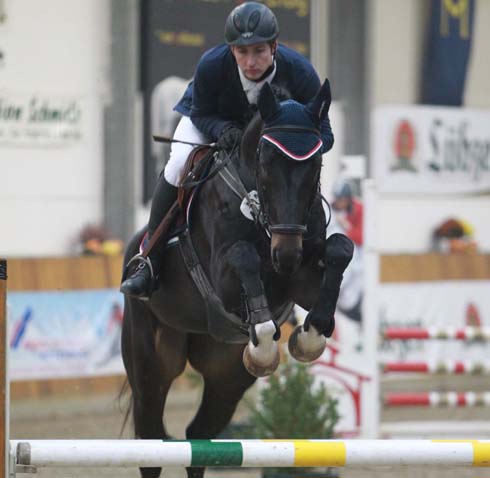 Philipp Makowei gewann beim Championatsturnier in Neu Benthen auf der Mecklenburger Chacco-Blue x Lord Kemm-Stute AFP’s Chantal den Großen Preis: Foto: Jutta Wego