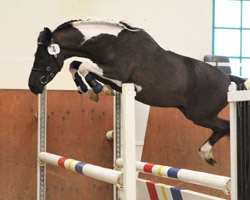 Den Körzuschlag erhielt auch der Lewitzer. Ein Rappschecke mit dem Stockmaß 1,44m, den Mario Mühlenberg aus Friedrichsruhe ausstellte. Winfried Rother hat den Olli T-Sohn mit seiner Verbandsprämienstute Gespy-Pia v. Graveur / Poncho gezogen. Er zeigte viel Qualität am Sprung, die sich in bester Vorhandtechnik und viel Vermögen ausdrückt. Über die mütterliche Großmutter Poesie III (v. Poncho) gehört der Hengst einer der berühmtesten Stutenfamilien der Lewitzer an.