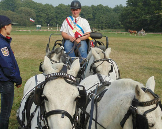 Der 19-jährige Mathias Wolf, unter Freunde Matze genannt, kann mit seinem Pony-Viererzug bereits auf mehrere Landestitel verweisen und wird beim Fahrturnier in seiner Heimatregion den gastgebenden Lewitzer FRV vertreten. Foto: Jutta Wego