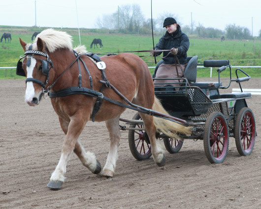Die bereits erwähnte Reservesiegerin der Landeselitestutenschau, AMELY-N, wurde mit einer Endnote von 8,46 Prüfungssiegerin. Auch in der Dressuraufgabe vor der Kutsche war sie mit Wertnote 8,51 die Beste und erreichte beim Ziehen Wertnote 8,46. Mit einer Prüfungsnote von 8,27 schloss ELKE-N die Prüfung ab. Die dreijährige braune Eros-Tochter aus einer Ernst von Gransee-Mutter, vom Landschaft & Fuhrmannshof Neubauer ausgestellt, wurde damit Reservesiegerin der Prüfung. Manfred Scheel stellte als Züchter die kraftprotzende vierjährige FANTASIE von Ferry / Verdun aus. 8,93 beim Ziehen war der mit Abstand höchste Wert in diesem Prüfungssegment. Die Dressuraufgabe klappte mit 7,58 nicht ganz so souverän, so dass die braune Stute mit Endnote 8,27 Dritte wurde. Eine Ergebnisliste befindet sich im Anhang. (FW)