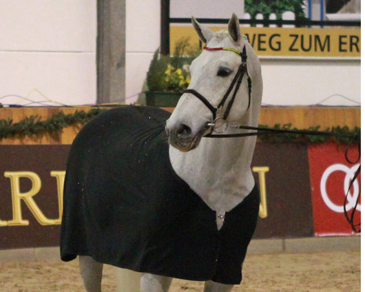 Das Gestüt Sprehe stellte weitere Dressurhengste vor. Mit von der Partie war der vierjährige BERNAY (Boston x Lord Loxley), der sich unter Hermann Gerdes im Galopp und Trab hervorragend zeigte. Ein Leckerbissen besonderer Art war der Auftritt von FÜRST WILHELM (Fürst Heinrich x Sandro Hit), der viele Freunde in MV hat und als Neunjähriger in die S-Klasse gereift ist. Auch der inzwischen zehnjährige CHRIST (Competent x Picard) fehlte nicht, der unter Hermann Gerdes ebenfalls seine S-Reife demonstrierte und ein mächtiger Kerl geworden ist. In MV gibt es hervorragende Nachzucht von dem Rappen.