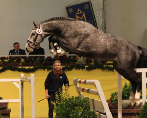 Auch im Landgestüt Redefin wird ein Hengst stationiert. Geschäftsführerin Antje Kerber und Rolf Günther sicherten sich den 2. Reserve-Springsieger v. Cristallo I / Amantus / Primas. Mathias Kampmann aus Hamburg stellte den 168cm großen Dunkelbraunen aus, der im westfälischen Ennigerloh bei Agnes Erdmann gezogen wurde. Nach oben hat auch dieser Hengst keine Grenzen und beim Freispringen entpuppte er sich als wahrer Akrobat, der zudem drei tadellose Grundgangarten hat.
